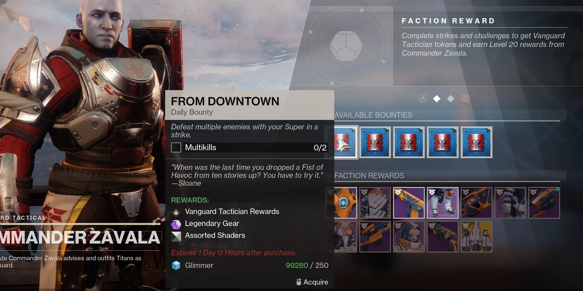 - Vanguardian – Zavala – Kill 50 Enemies in Strikes