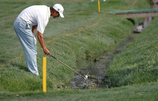 If the water hazard is marked with yellow stakes, then it is a “regular” water hazard. In this case, the player has limited options. The most common and simplest choice is to drop a ball behind the hazard, keeping the spot where the ball last crossed the hazard in line with the hole. The player is allowed to choose any point along this line, as long as they are no closer to the hole, but this move comes with a 1-stroke penalty. You certainly don’t need to worry about water hazards when you login into 1xBet, which has a fantastic selection of golf bets.